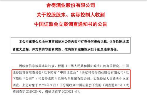 今年9月2日,因涉嫌信息披露违法违规,证监会对周政立案调查,同时被调查的还有舍得集团。