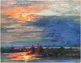 艺术家的本质是“文心体大而思精”,是艺术家灵魂状态的写照,是用绘画理论思维语言把他铸成一个个画面。将国画写意和印象派油画结合起来,形成一种新的油画语言和意境,中国水墨画所追求的意象和境界不外是醇古秀雅、极尽苍茫之致,还有雄浑之神,静逸之气,在即心即境、神守其舍的氛围中,道便会自然而然地出现。就是同天地之道共呼吸,其中“风骨”和“意象”尤为千古独步,“落叶动秋声,月影落江寒”,这就是风骨,风骨的最高目的是揭示存在的本质,使不可见的存在成为可见的存在。意象绘画语言符号系统的最高目的正是通过自己独特手段,将不可见的存在呈现为可见的和可理解的东西,抓住了“意象”就抓住了中国传统美学和西方现代美学的契合点,从而对艺术世界的进一步追问和对话